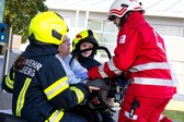 Insgesamt mussten 15 Personen gerettet werden. Diese wurden vom Roten Kreuz realistisch geschminkt, um die Szenarien so echt wie möglich wirken zu lassen. (Hinweis: Auf den Fotos sind entsprechend realistisch geschminkte Verletzungen zu sehen, die für manche Personen verstörend wirken können.)